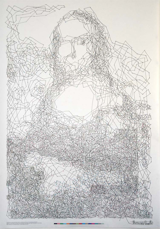Thomas Pavitte wanted to create the most complex dot-to-dot drawing, so he made a 6,239 dot to dot Mona Lisa drawing. It took him 9 hours and 15 minutes to connect all the dots on the A0 poster. Impressive work.